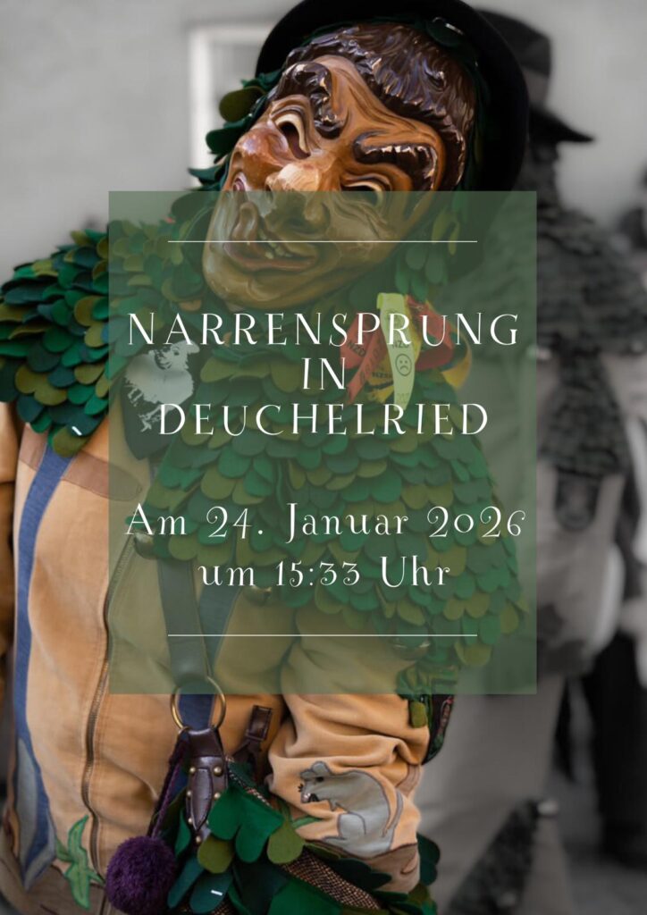 Es ist wieder soweit: Wir laden alle Narren, Familien und Fasnetsbegeisterte ganz herzlich zu unserem Umzug ein. Als Tradition im Herzen von Deuchelried feiern wir gemeinsam die Fasnet, pflegen unser Brauchtum und sorgen mit tollen Hästrägern, originellen Gruppen und viel guter Laune für ein Ereignis, das Groß und Klein begeistert.